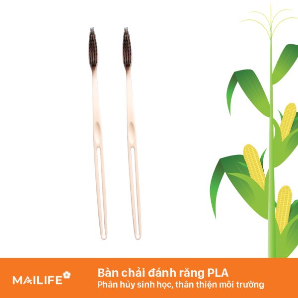 Bàn chải đánh răng PLA được làm từ nguồn tài nguyên tái tạo như bột ngô hóa dẻo, và có khả năng phân hủy sinh học trong môi trường chôn ủ phù hợp.